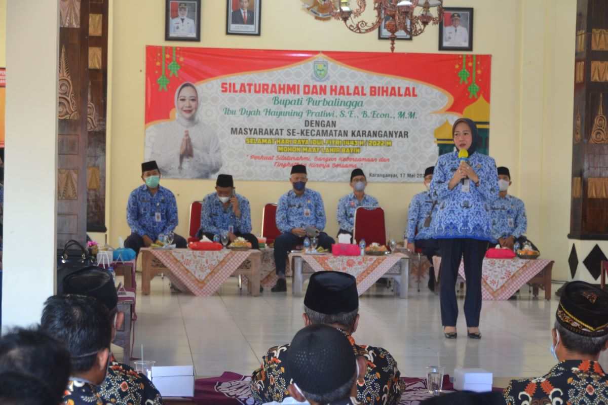 PURBALINGGA – Para Kepala Desa (Kades) yang masa jabatannya habis di tahun 2022 ini untuk tidak ada salahnya mencalonkan kembali. Hal ini diungkapkan oleh Bupati Purbalingga Dyah Hayuning Pratiwi SE BEcon MM dalam Acara Silaturahmi dan Halal Bi Halal bersama Aparatur Pemerintah se-Kecamatan Karanganyar, Selasa (17/5) di Kantor Kecamatan Karanganyar.