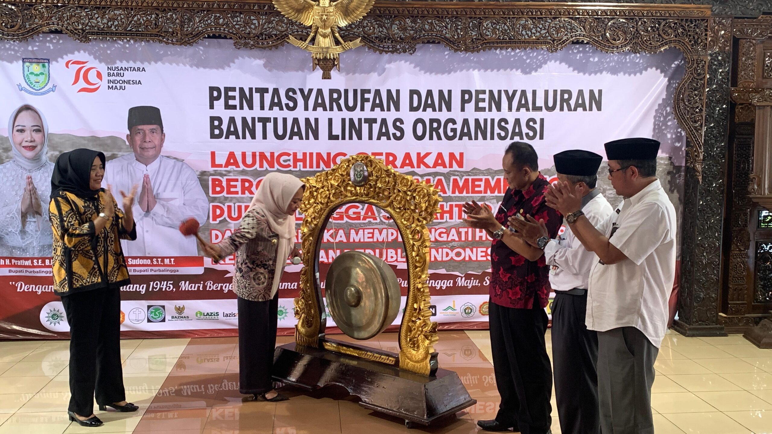 Bupati Purbalingga, Dyah Hayuning Pratiwi (Tiwi) yang turut hadir menyerahkan beragam bantuan kepada masyarakat secara simbolis pun mengapresiasi sinergitas dan kolaborasi serta kontribusi seluruh pihak, yakni tidak kurang dari 27 Badan Amil Zakat, Organisasi keagamaan, maupun Organisasi kemasyarakatan.