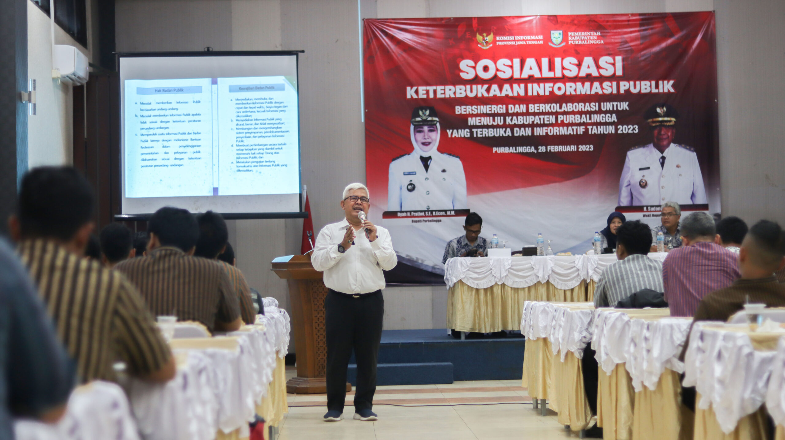 PURBALINGGA, INFO – Dinas Komunikasi dan Informatika (Dinkominfo) Purbalingga mengadakan acara Sosialisasi Keterbukaan Informasi Publik (KIP) dengan mengundang narasumber Wakil Ketua Komisi Informasi (KI) Provinsi Jawa Tengah, Setiadi. Acara yang berlangsung Selasa (28/2) di PM Collaboration tersebut merupakan langkah menuju Kabupaten Purbalingga yang informatif.