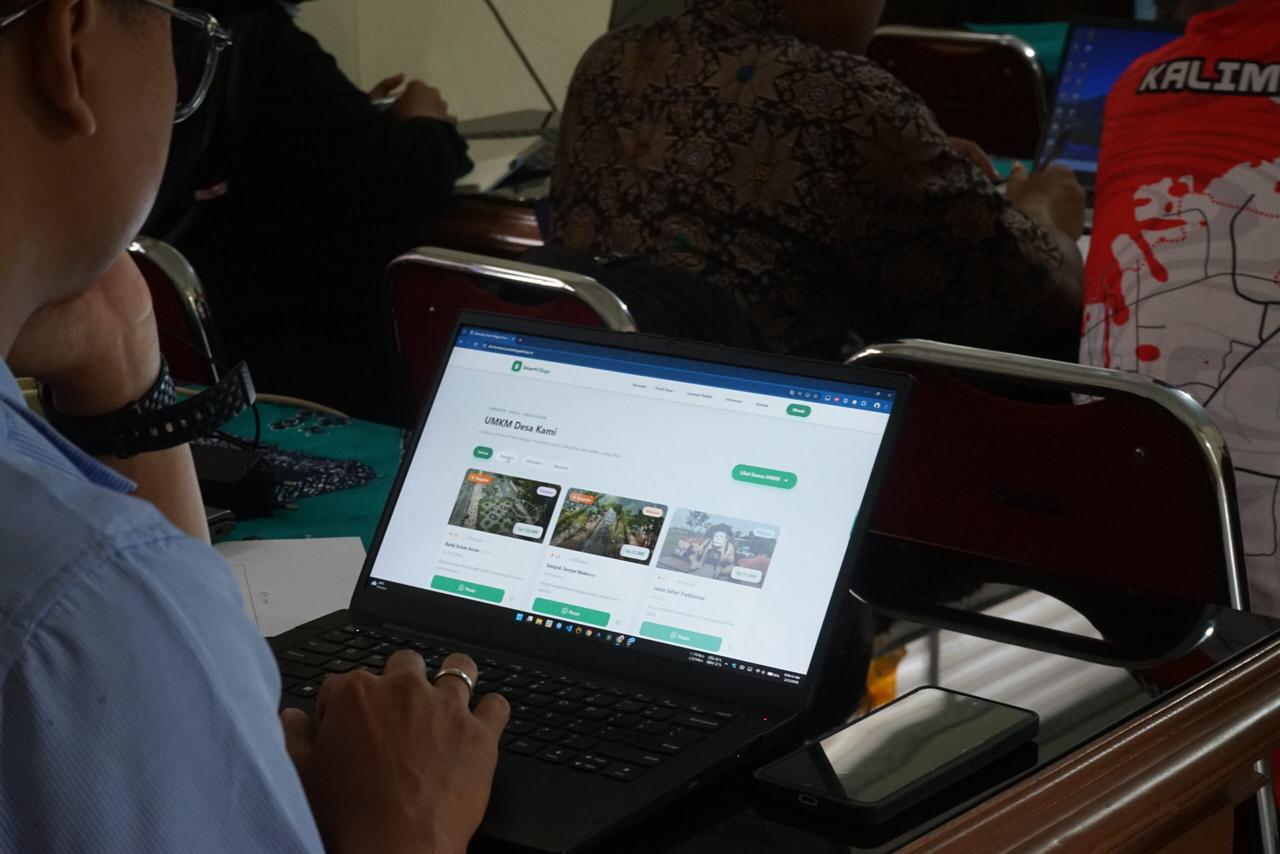 Para peserta dibimbing praktek langsung dalam mempublikasi informasi melalui website desa.