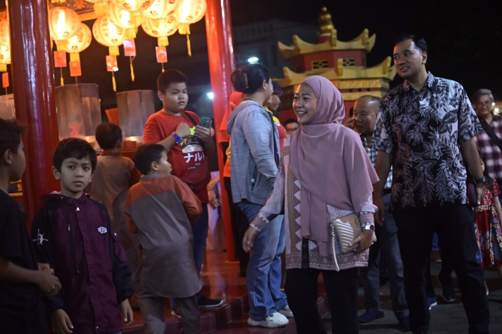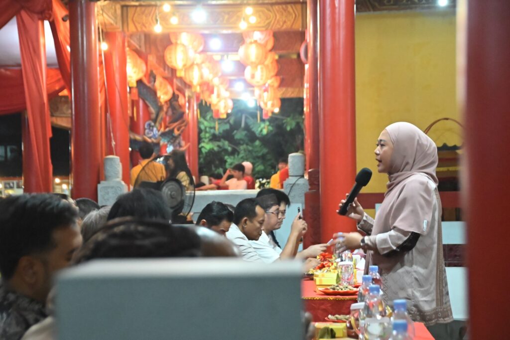 “Rasa-rasanya ini bukan kali pertama saya hadir dalam peringatan festival kue bulan di Klenteng Hok Tek Bio. Melalui kesempatan ini saya mengucapkan selamat kepada sedulur-sedulur saya warga masyarakat Tionghoa dalam penyelenggaran festival dalam rangka menguri-uri budaya ini,” kata Bupati Tiwi yang hadir bersama suami, Rizal Diansyah.