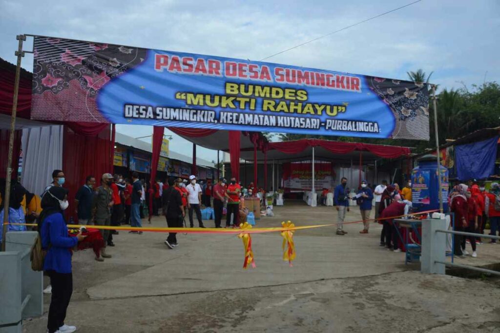 PURBALINGGA – Pemerintah Desa Sumingkir, Kecamatan Kutasari membangunkan Pasar Desa yang dikelola Badan Usaha Milik Desa (BUMDes) Mukti Rahayu. Pasar Desa ini diresmikan Bupati Purbalingga Dyah Hayuning Pratiwi SE BEcon MM didampingi Wakil Bupati, Ketua DPRD, Sekretaris Daerah dan Camat Kutasari, Rabu (16/2).