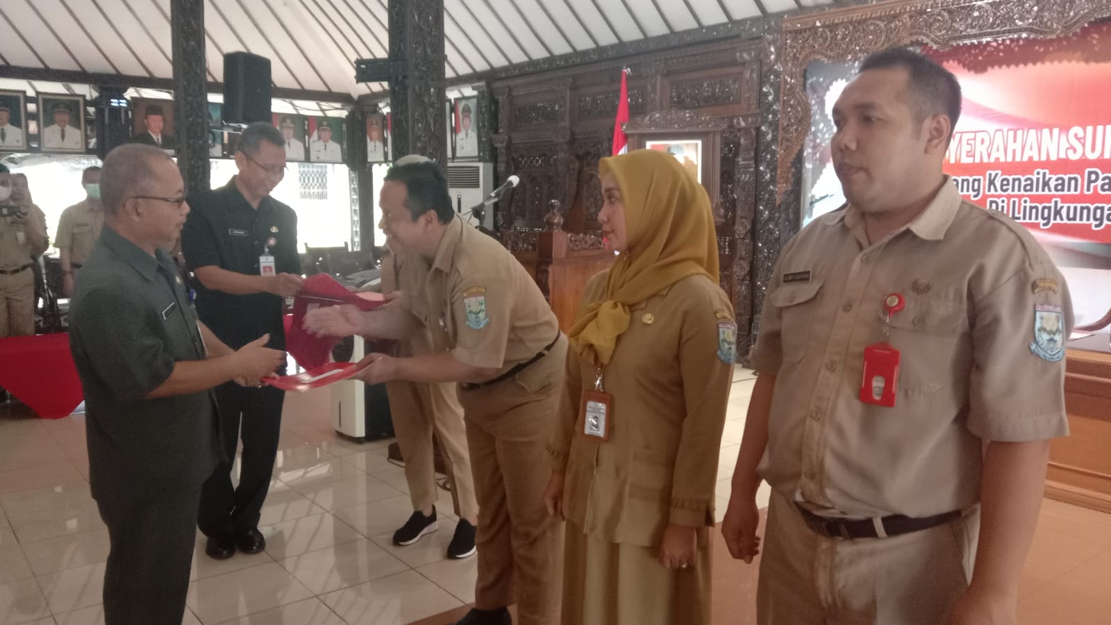 PURBALINGGA INFO- Pegawai Negeri Sipil (PNS) di lingkungan Pemerintah Kabupaten (Pemkab) Purbalingga dituntut untuk terus meningkatkan performa. Hal tersebut disampaikan Asisten Administrasi Umum Sekda Purbalingga, Budi Susetyono yang mewakili Bupati Purbalingga pada acara Penyerahan Surat Keputusan Bupati Purbalingga Tentang Kenaikan pangkat PNS di lingkungan Pemkab Purbalingga, Senin (27/3/2023) di Pendapa Dipokusumo Purbalingga.