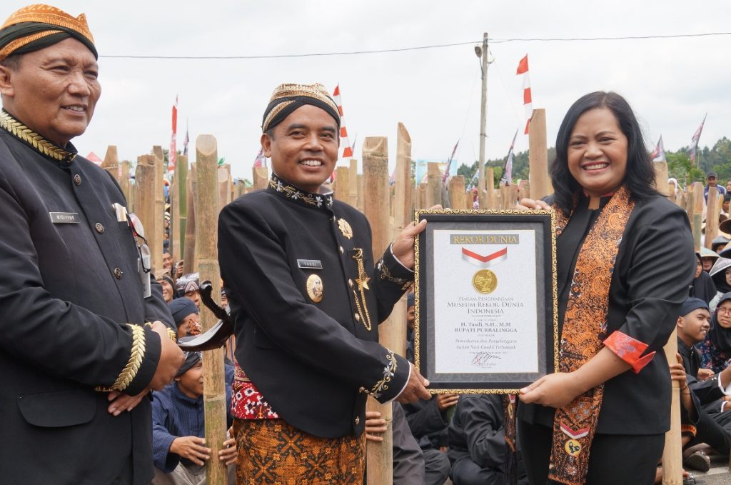 PURBALINGGA, INFO – Kabupaten Purbalingga kembali melengkapi koleksi rekor pada Museum Rekor Dunia Indonesia (MURI). Pada perhelatan Festival Gunung Slamet (FGS) ke-3 di Desa Wisata Serang yang berlangsung 21 – 23 September 2017, dua rekor baru kembali dicatatkan yakni Penanaman Pohon Suren terbanyak 35.000 bibit menjadi catatan rekor ke 19 dan Nasi Jagung 3G (baca : Tri G) yakni nasi jagung dengan lauk oseng Gandul (papaya), Gundil (tempe goreng), dan Gesek (ikan asin) tercatat rekor MURI ke 20.
