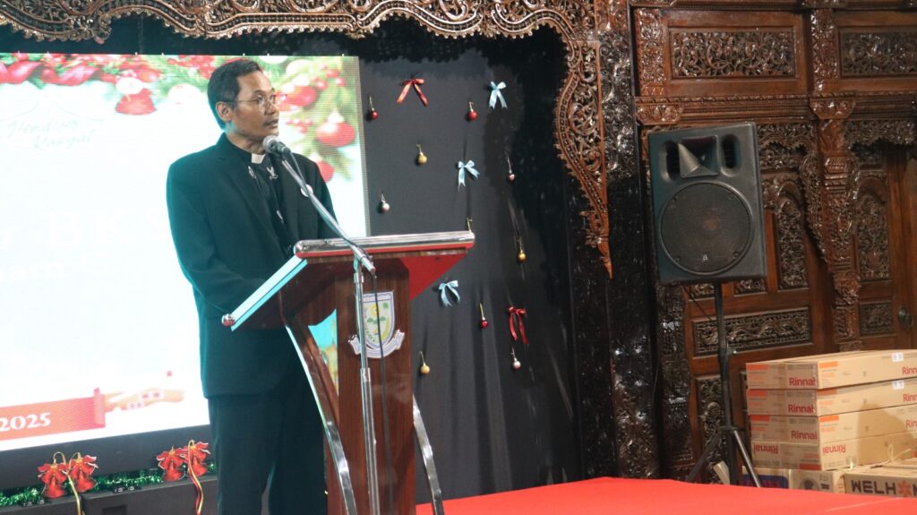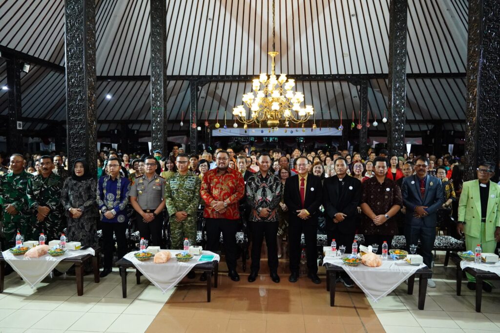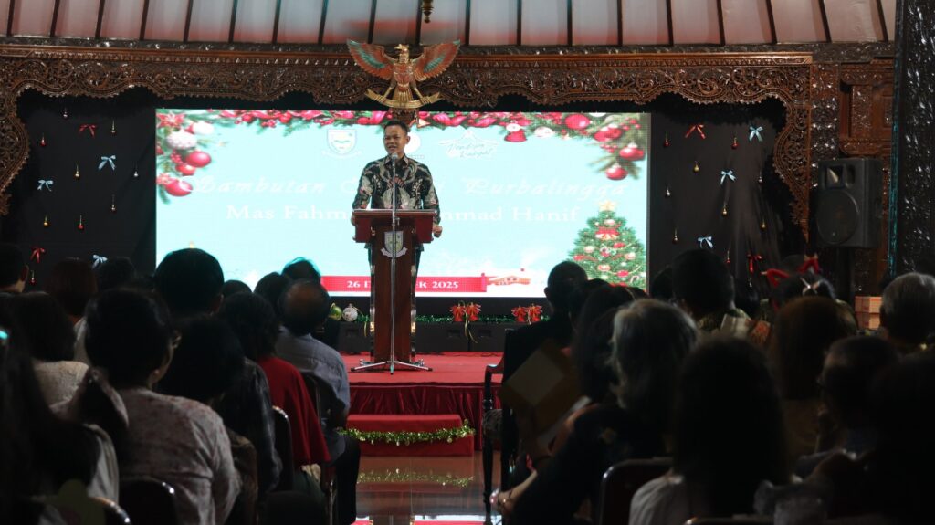 PURBALINGGA – Pemerintah Kabupaten (Pemkab) Purbalingga berkerjasama dengan Badan Kerja Sama Antar Gereja (BKSAG) Kabupaten Purbalingga kembali mengadakan acara Natal Bersama di Pendapa Dipokusumo, Jumat (26/12/2025) malam. Acara tersebut dihadiri sekitar 1500 orang termasuk Bupati Purbalingga, H. Fahmi M. Hanif, Wakil Bupati, Sekretaris Daerah, dan Forkopimda Kabupaten Purbalingga.