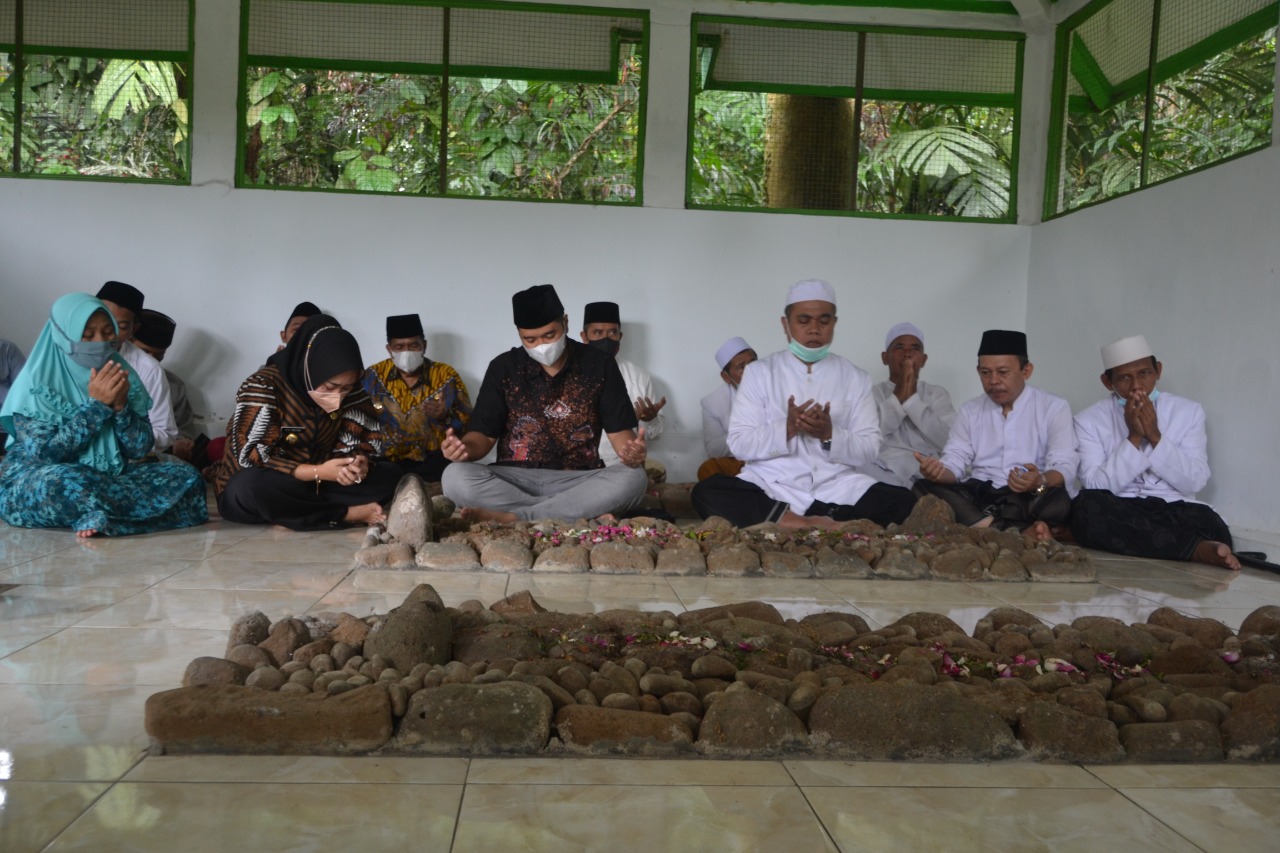 PURBALINGGA – Bupati Purbalingga didampingi suami, Wakil Bupati beserta para alim ulama Pimpinan Pondok Pesantren di Kabupaten Purbalingga melakukan ziarah ke makam leluhur, Jumat (9/4). Ziarah ini merupakan rangkaian tradisi masyarakat yang disebut Nyadran yang biasanya dilakukan pada bulan Sya’ban pada kalender Hijriyah.“Sebagaimana tradisi masyarakat, kita Nyadran, mendoakan leluhur leluhur yang sudah mendahului kita,” kata Bupati Purbalingga Dyah Hayuning Pratiwi SE BEcon MM.