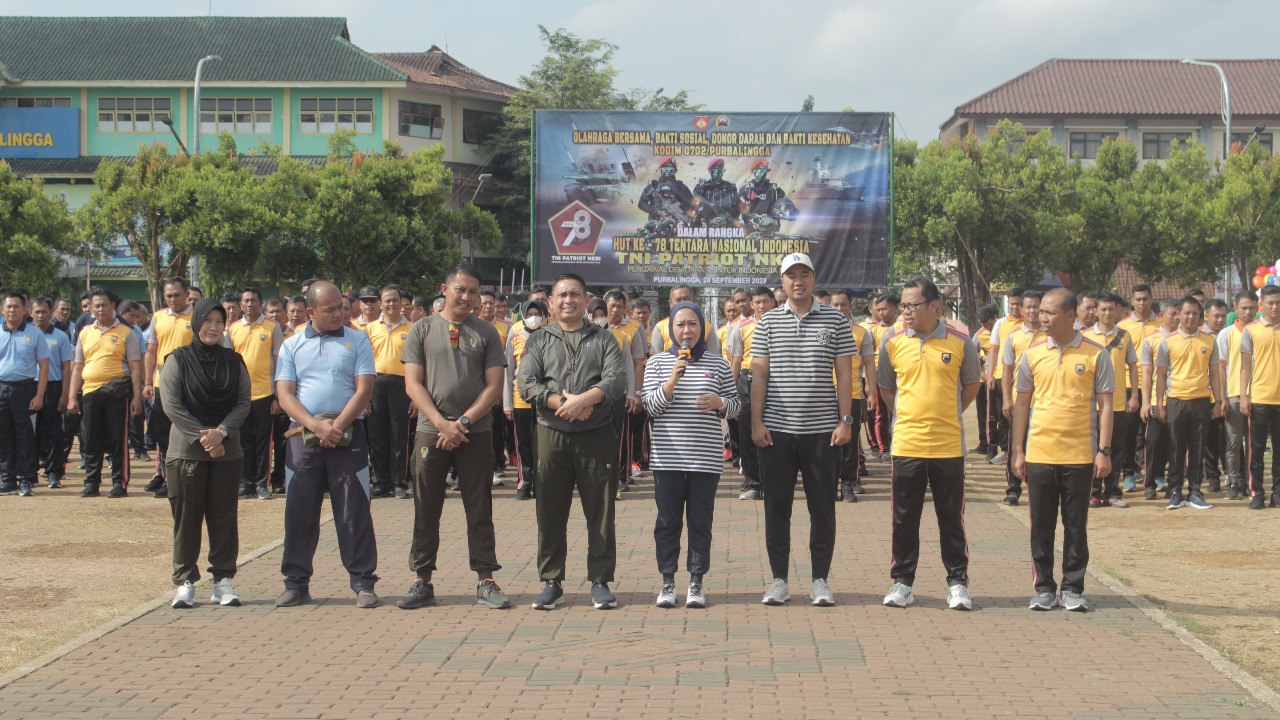 “Selamat HUT ke-78 TNI. TNI Patriot NKRI,” ucap Bupati Tiwi usai mengikuti apel dan olahraga bersama dalam rangka HUT ke-78 Tahun 2023 TNI yang dihelat di Alun-alun Purbalingga, Minggu (24/09/2023).