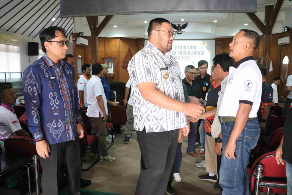 PURBALINGGA – Komite Olahraga Nasional Indonesia (KONI) Kabupaten Purbalingga menyelenggarakan Rapat Kerja (Raker) tahun 2025, Selasa (30/12/2025) di OR Graha Adiguna Komplek Pendapa Dipokusumo Purbalingga. Ketua KONI Purbalingga, R. Budi Setiawan memotivasi para pengurus dan perwakilan 36 cabang olahraga (cabor) di Kabupaten Purbalingga untuk optimis menghadapi Pekan Olahraga Provinsi (Porprov) Jawa Tengah XVII tahun 2026 di Semarang Raya meski dengan segala keterbatasan yang ada.