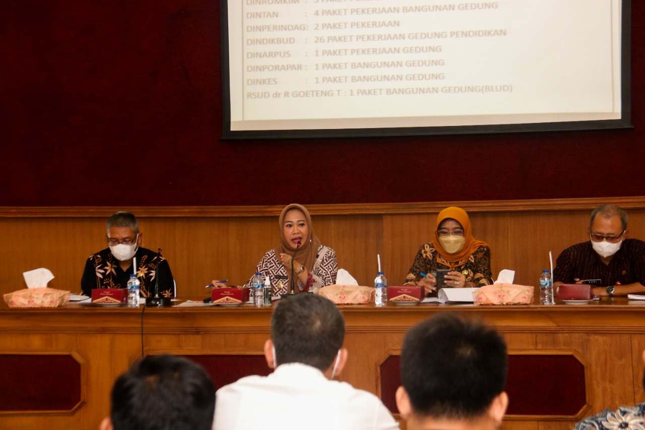 “Saya turut menghimbau bagi Pengguna Anggaran, PPKom, PPTK, Tim Teknis, ahli pada masing-masing OPD untuk dapat benar-benar mengendalikan pelaksanaan pekerjaan sehingga tidak terjadi kesalahan dalam penggunaan material, volume pekerjaan, maupun metode pelaksanaan yang dapat menjadikan pekerjaan terlambat,” tegasnya.
