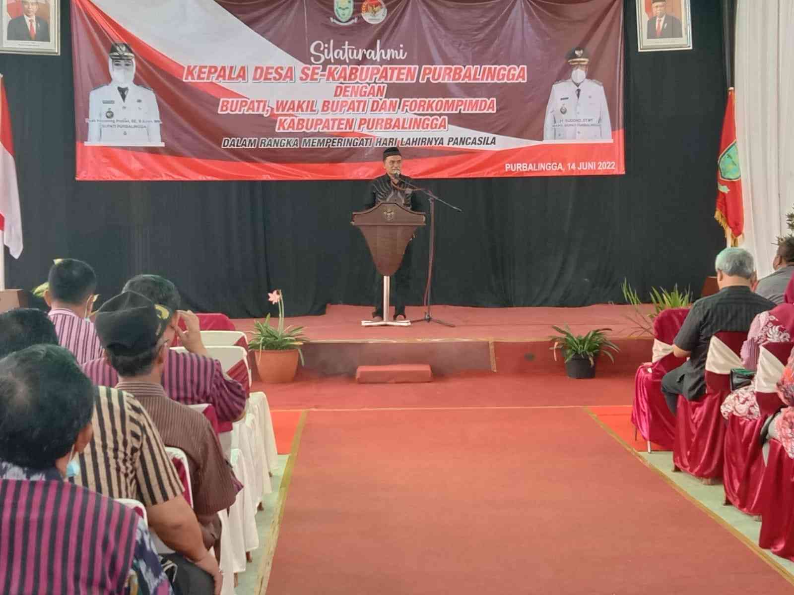 PURBALINGGA INFO- Pancasila sebagai ideologi bangsa bukan suatu benda khayalan atau abstrak yang tidak bisa dipraktekkan. Hal tersebut disampaikan Budayawan Purbalingga Agus Sukoco saat memberikan materi pada acara silaturahmi Kepala Desa se-Kabupaten Purbalingga dengan Bupati, Wakil Bupati dan Forkopimda Kabupaten Purbalingga, Selasa (14/6/2022) di rest area Mrebet komplek Masjid Cheng Hoo.