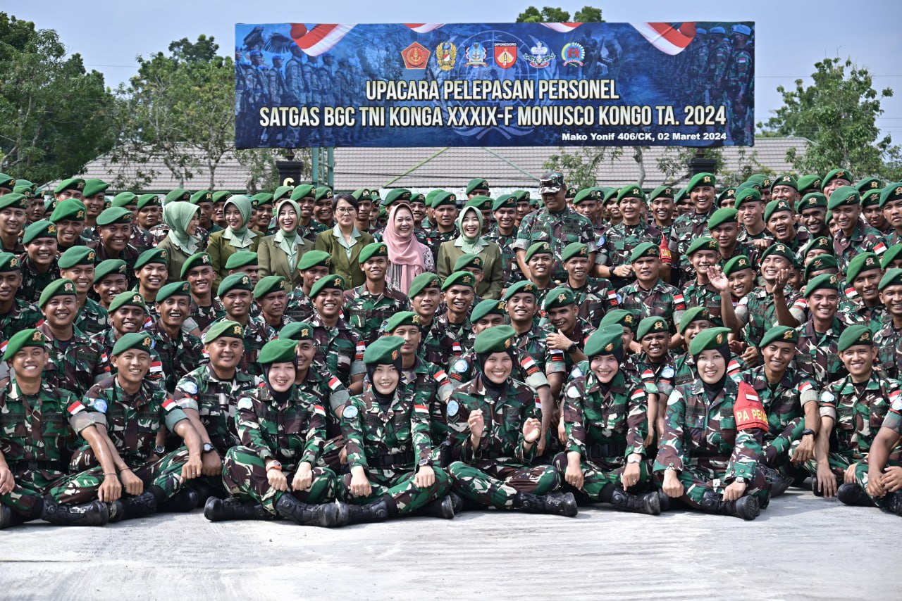 “Karena ini atas amanah dari pimpinan untuk diberangkatkan ke Kongo mewakili Indonesia sebagai pasukan reaksi cepat,” kata Pangdam Diponegoro usai Upacara Pelepasan Personel Satgas BGC TNI Konga XXXIX-F Monusco Kongo TA 2024 di Batalyon Inf 406 Candra Kusuma, Sabtu (2/3/2024).