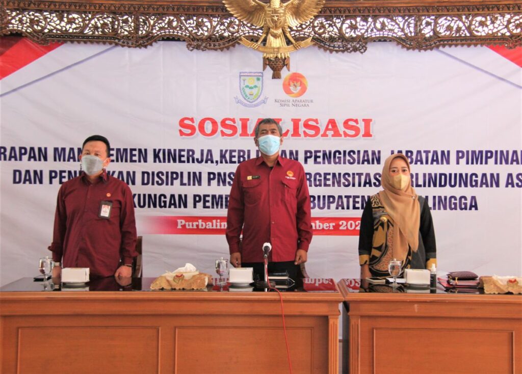 “Mudahan proses yang dilakukan pansel segera selesai dan segera kami mintakan persetujuan dari KASN. Desember kami akan lakukan pelantikan, karena dengan kekosongan yang jumlahnya cukup banyak itu, banyak jabatan-jabatan yang dirangkap oleh plt, tentunya kinerja kita di jajaran pemerintah tidak maksimal.”, papar Bupati Dyah Hayuning Pratiwi S.E., B.Econ M.M pada acara Sosialisasi Penerapan Manajemen Kinerja, Kebijakan Pengisian Jabatan Pimpinan Tinggi dan Penegakan Disiplin PNS Serta Urgensitas Perlindungan ASN di Lingkungan Pemerintah Kabupaten Purbalingga di Pendopo Dipokusumo, Selasa (30/11).