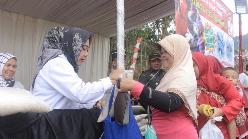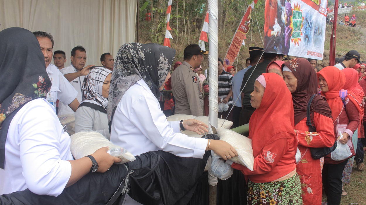 “Kita mendapat bantuan dari Provinsi Jawa Tengah berupa 400 paket sembako murah berisi 1 kg beras, 1 kg daging ayam dan 1 kg telur yang dapat dibeli masyarakat seharga Rp 10 ribu. Sedangkan dari Pemkab Purbalingga membagikan 471 paket beras dan lele secara gratis,” ujar Bupati Purbalingga Dyah Hayuning Pratiwi, SE, BEcon, MM (Tiwi) usai membuka Pasar Murah di Lapangan Desa Sangkanayu Kecamatan Mrebet, Rabu (9/10).