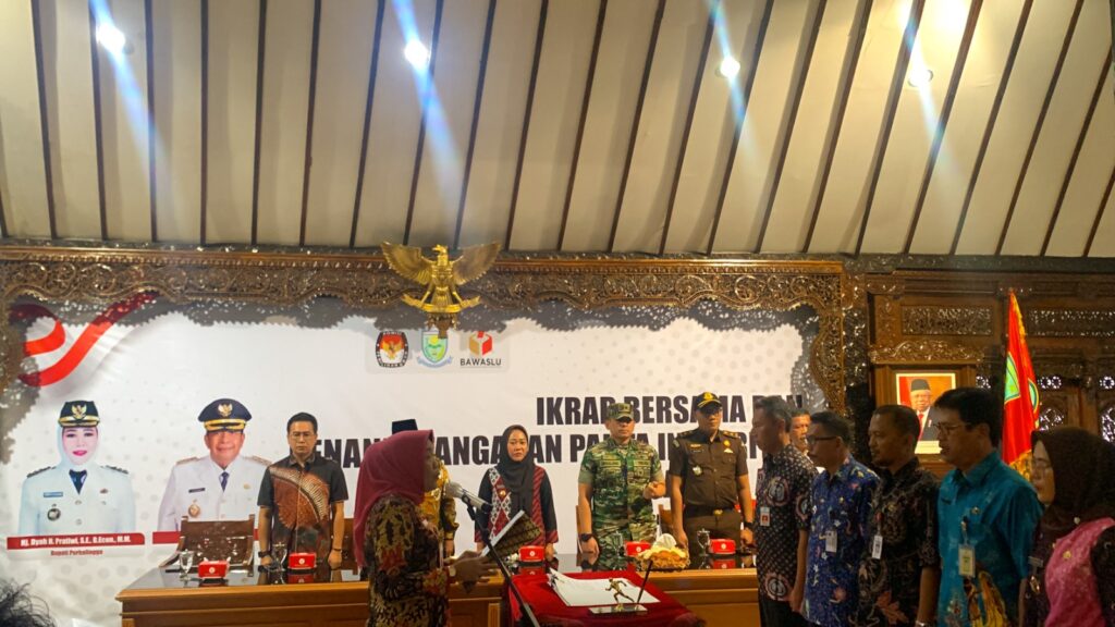 PURBALINGGA INFO – Menghadapi pelaksanaan Pemilu tahun 2024, Pemerintah Kabupaten (Pemkab) Purbalingga menggelar Ikrar Bersama Dan Penandatanganan Pakta Integritas Netralitas ASN, bertempat di Pendopo Dipokusumo Purbalingga, Jumat (24/11/2023).