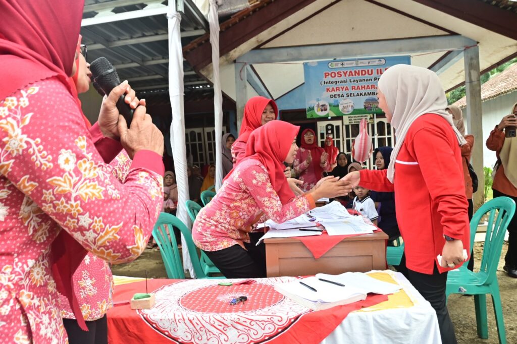 PURBALINGGA – Bupati Purbalingga Dyah Hayuning Pratiwi (Tiwi) meninjau layanan kesehatan di Pos Pelayanan Terpadu (Posyandu) Karya Raharja 3 Desa Selakambang, Kecamatan Kaligondang, Kamis (05/09/2024). Bupati Tiwi secara langsung menyaksikan pelayanan kepada bayi dan balita yang dilakukan petugas mulai dari meja pendaftaran hingga meja penimbangan dan pengukuran tinggi badan.