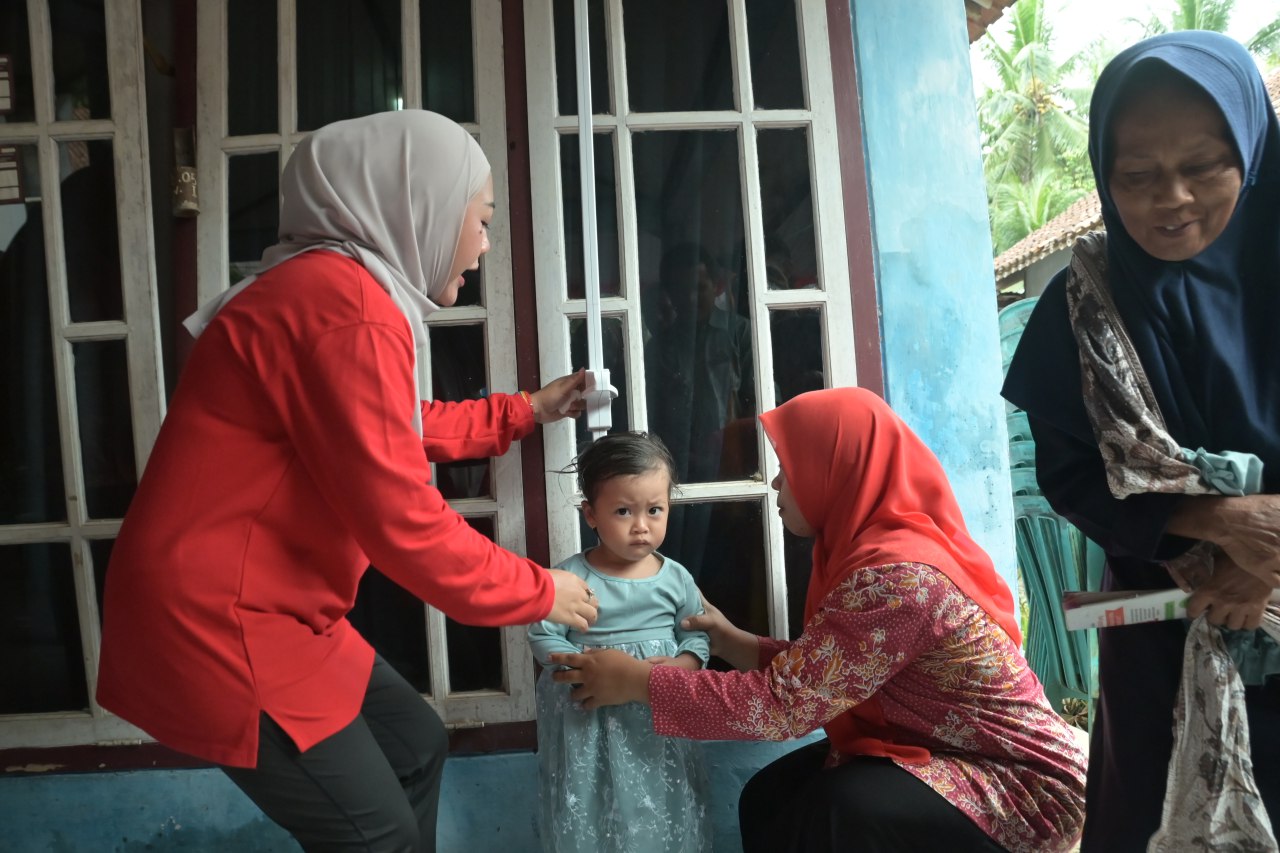 “Ibu-ibu aja kelalen rutin untuk cek kesehatan. Upayakan sebulan satu kali, wajib, kudu, harus ke Posyandu, supaya kita tahu tumbuh kembang putra putri kita nggih,” kata Bupati Tiwi.