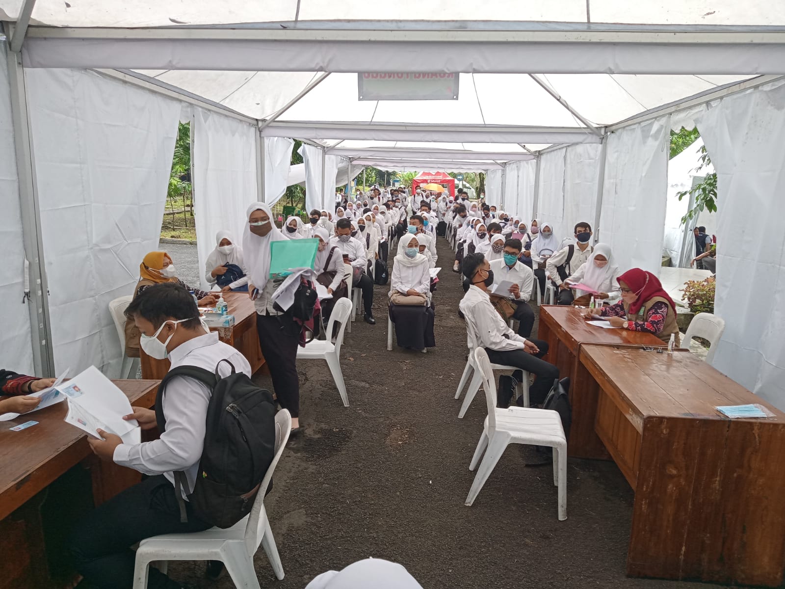 Bagi peserta dengan hasil pengukuran suhu ≥ 37,30C diberikan tanda khusus dan mengikuti ujian di tempat terpisah / ruangan khusus yang diawasi.