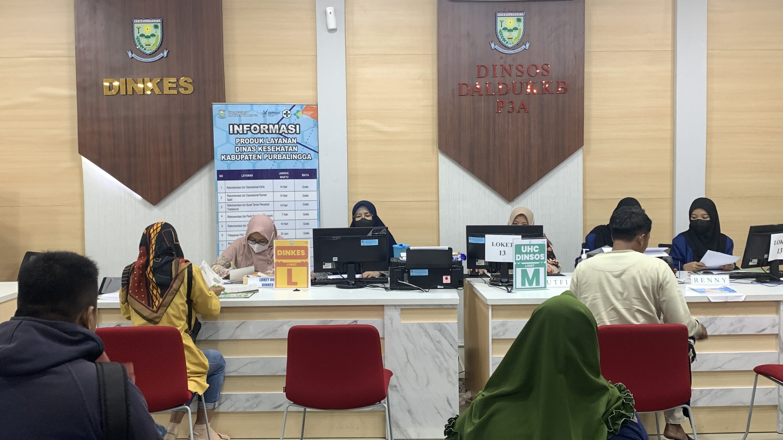 Yang terbaru, lanjutnya menjelaskan, adalah layanan instansi oleh Dinsosdalduk KBP3A Kabupaten Purbalingga yang terkenal dalam melayani urusan seputar Universal Health Coverage (UHC). Di samping itu, tenant yang paling banyak dikunjungi oleh masyarakat khususnya pemohon layanan adalah Dinpendukcapil dan Dinnaker Kabupaten Purbalingga.