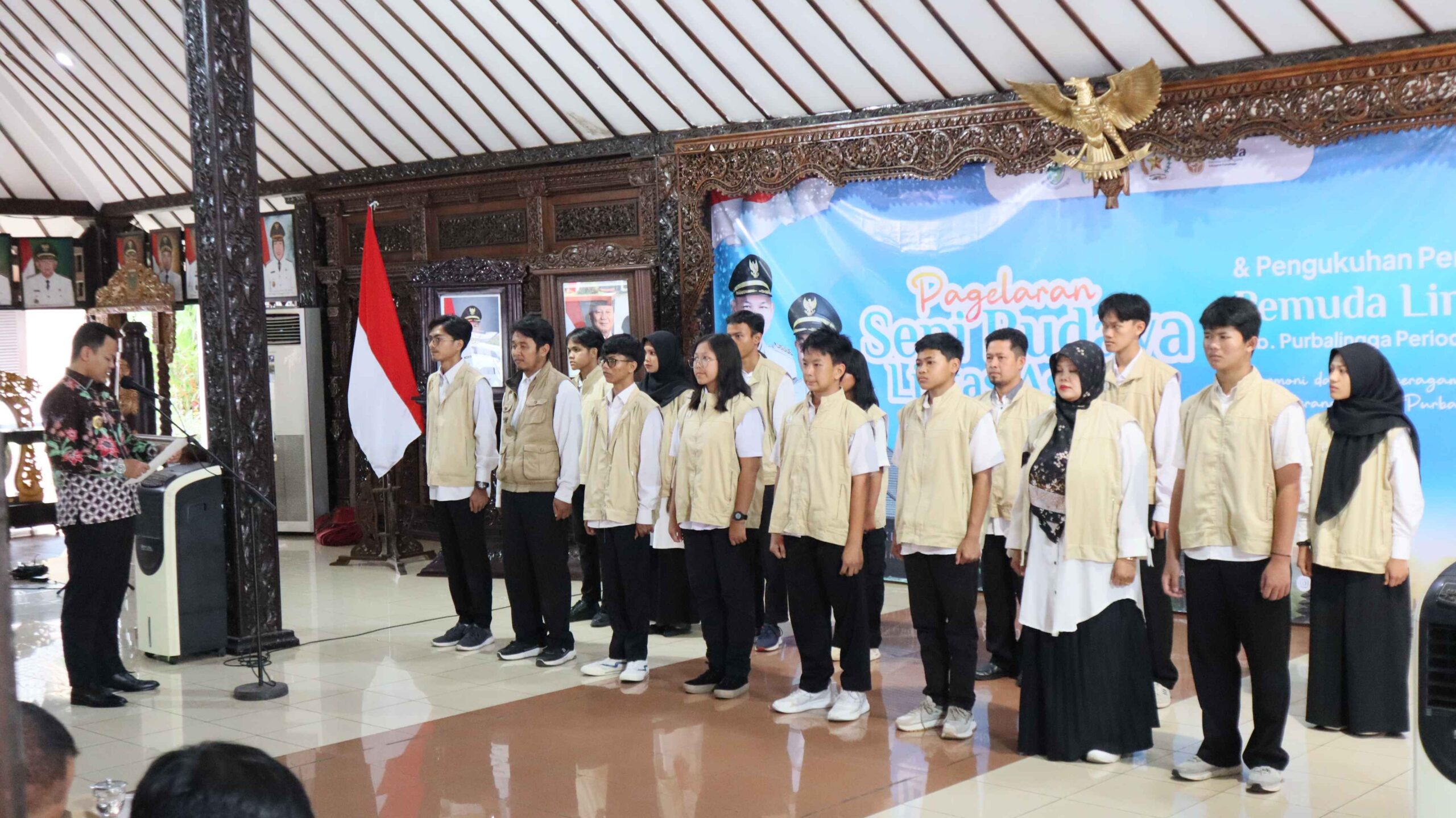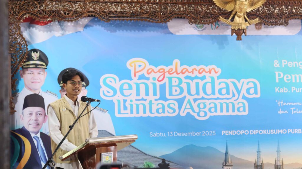 PURBALINGGA – Bupati Purbalingga, H. Fahmi M. Hanif mengukuhkan pengurus Pemuda Lintas Agama (Pelita) di Pendapa Dipokusumo Kabupaten Purbalingga, Sabtu (13/12/2025). Acara pengukuhan sekaligus pagelaran seni budaya lintas agama tersebut dihadiri oleh Wakil Ketua DPRD, Forkopimda, Kepala OPD terkait, dan pimpinan Ormas keagamaan Kabupaten Purbalingga.
