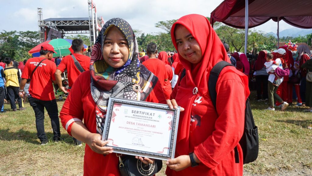 Berbagai penghargaan juga diberikan dalam kegiatan ini, salah satunya kepada Desa Tamansari sebagai desa dengan angka stunting terendah di Kecamatan Karangmoncol. Bidan Desa Tamansari, Siti Marfuah, melaporkan bahwa angka prevalensi stunting di Desa Tamansari saat ini sebesar 6,3 persen, atau 30 anak dari 478 anak.