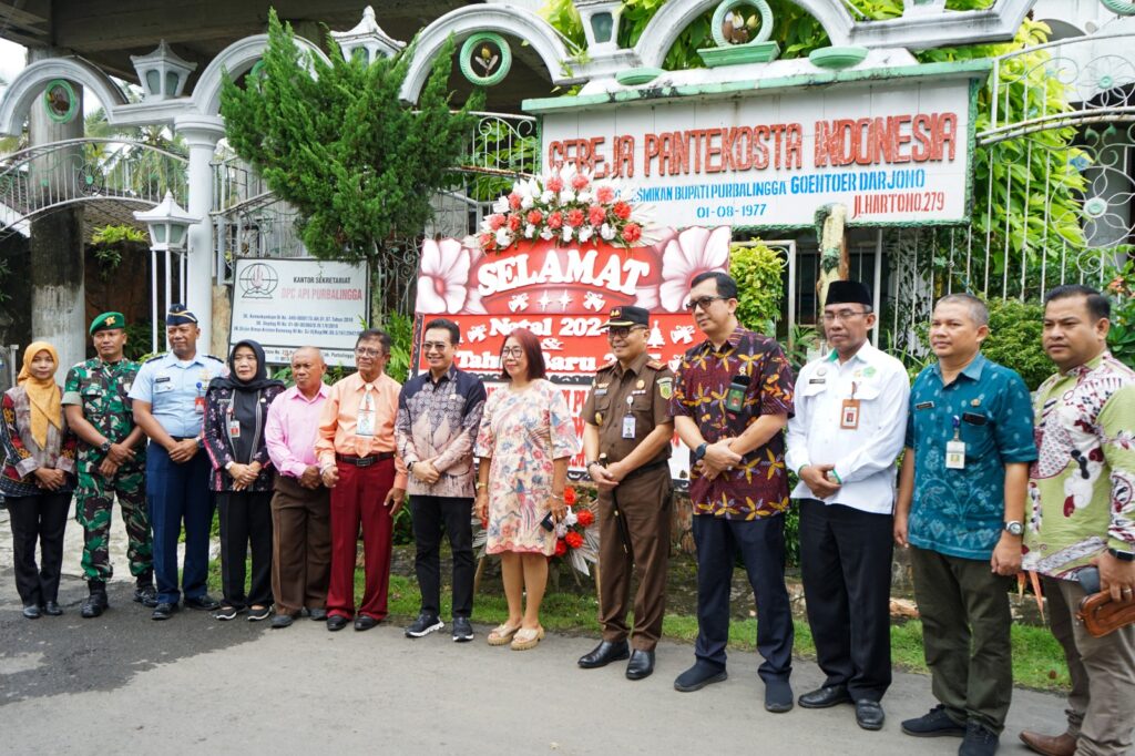 PURBALINGGA INFO – Dalam rangka menyambut perayaan Natal 2024 dan Tahun Baru 2025, Pemerintah Daerah (Pemda) Purbalingga bersama Forum Koordinasi Pimpinan Daerah (Forkopimda) menggelar Safari Natal di 19 gereja yang tersebar di wilayah Purbalingga. Rombongan safari dibagi menjadi dua tim, yaitu Tim 1 yang dipimpin langsung oleh Bupati Purbalingga Dyah Hayuning Pratiwi (Tiwi) dan Tim 2 yang dipimpin oleh Ketua DPRD Purbalingga HR Bambang Irawan.