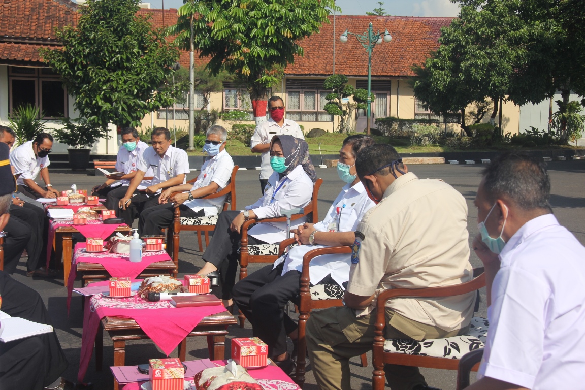 “Kita hari ini melakukan rapat berjemur dibawah sinar matahari, jadi kalau biasanya didalam ruangan, ini sesuai arahan-arahan dari kementrian kesehatan kita melakukan rapat di depan pendopo dibawah sinar matahari langsung dan tentunya dengan tetap melaksanakan physical distancing atau menjaga jarak antara satu dengan yang lain.” kata bupati yang sering dipanggil Tiwi.