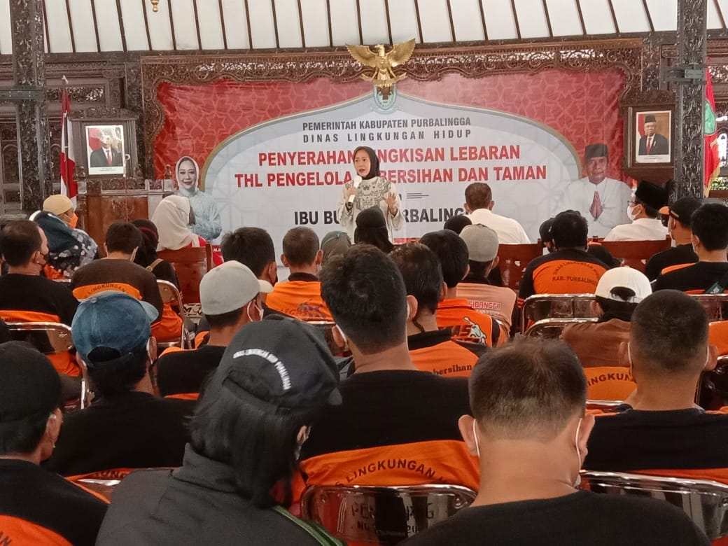 Bupati mengatakan, Pemkab Purbalingga sangat memberikan perhatian terhadap tenaga kebersihan di Dinas Lingkungan Hidup karena mereka menjadi ujung tombak kebersihan di Kabupaten Purbalingga. Menurutnya, tidak ada OPD di lingkungan Pemkab Purbalingga yang memberikan bingkisan terhadap Tenaga Harian Lepas (THL) kebersihan selain di Dinas Lingkungan Hidup.