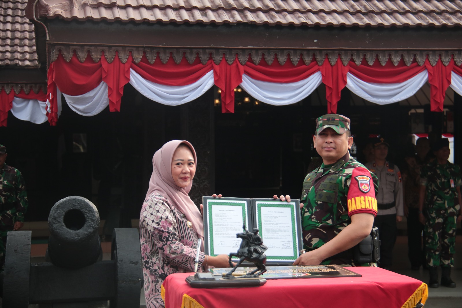 Penutupan TMMD Sengkuyung tahap III tahun 2023 ditandai dengan penyerahan hasil TMMD Sengkuyung tahap III dari Dandim 0702 Purbalingga Letkol Inf Dipo Sabungan Lumban Gaol kepada Bupati Purbalingga Dyah Hayuning Pratiwi. (dhs/Kominfo)