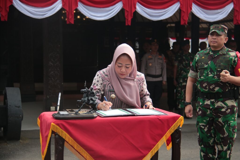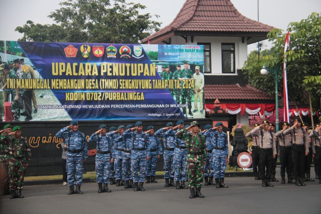 Komandan Kodim 0702/Purbalingga, Letkol Inf Dipo Sabungan Lumban Gaol, saat memimpin upacara penutupan TMMD Sengkuyung Tahap III tahun 2024, Kamis (22/8/24), di Halaman Pendopo dipokusumo mengatakan kegiatan TMMD merupakan bentuk sinergitas TNI – Pemerintah Daerah dengan masyarakat dalam membangun proyek infrastruktur.
