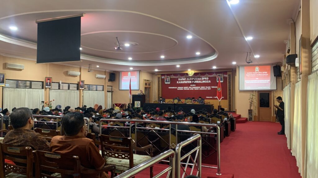 PURBALINGGA INFO – Bupati Purbalingga Dyah Hayuning Pratiwi (Tiwi) menyampaikan jawaban atas pandangan umum Fraksi DPRD terhadap Rancangan Peraturan Daerah (Raperda) Tentang APBD Kabupaten Purbalingga Tahun Anggaran 2025 pada Rapat Paripurna DPRD yang digelar pada hari Jumat (13/9/24) di Rapat Paripurna DPRD Purbalingga. Rapat dipimpin oleh Wakil Ketua Sementara DPRD Purbalingga Aman Waliyudin dan dihadiri oleh Wakil Bupati Purbalingga Sudono, perwakilan OPD serta tamu undangan lainnya.