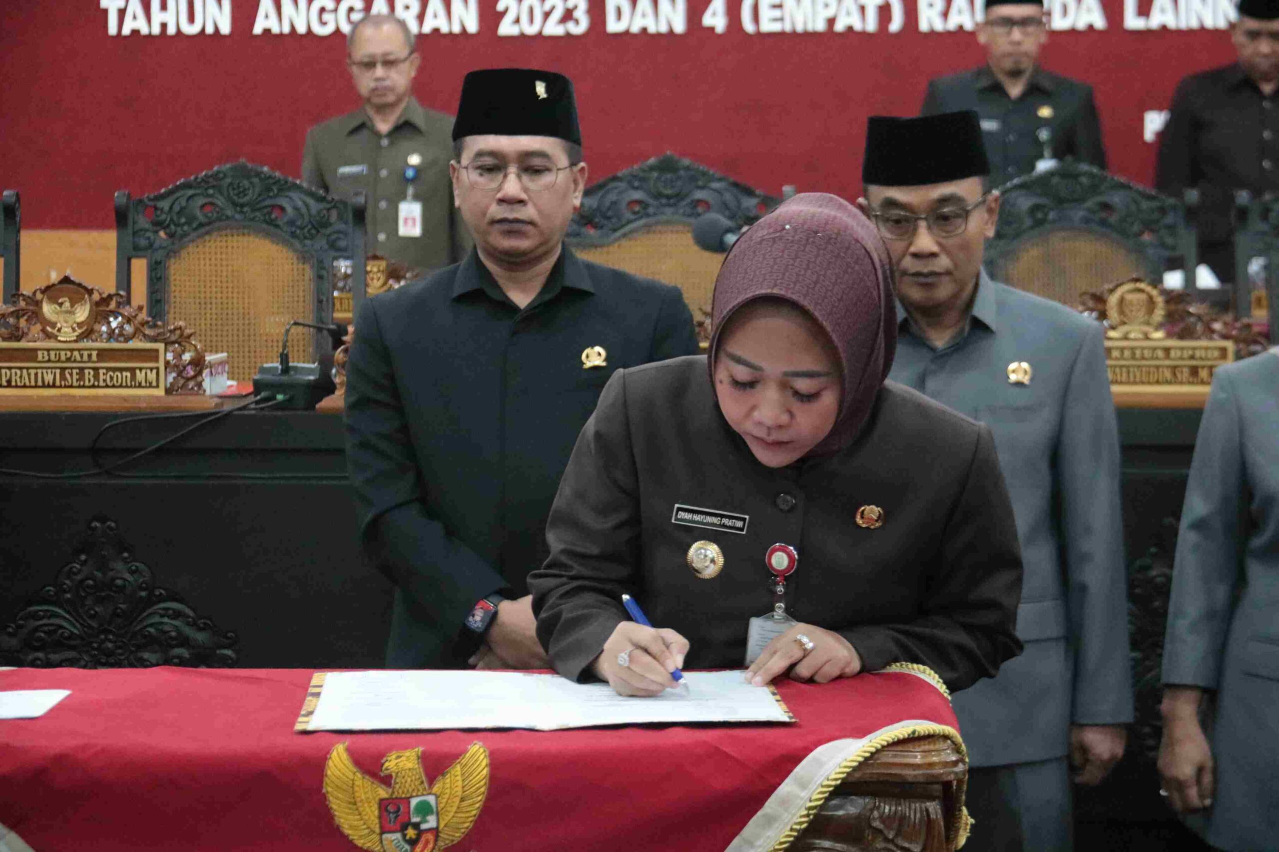 Dalam rapat paripurna tersebut, Bupati Tiwi juga menyampaikan Rancangan Peraturan Daerah (Raperda) tentang Perubahan APBD TA 2023 dan 4 Raperda lainnya. Keempat Raperda lainnya tersebut adalah Raperda tentang pajak dan retribusi daerah, Raperda tentang pengelolaan pasar rakyat, Raperda tentang pembentukan dan susunan Perangkat Daerah, dan Raperda tentang fasilitasi pengembangan pesantren.