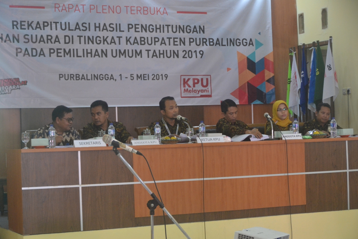 PURBALINGGA – Komisi Pemilihan Umum (KPU) Kabupaten Purbalingga memulai Rekapitulasi Hasil Penghitungan Suara Pemilu 2019 Tingkat Kabupaten, Rabu (1/5) di Aula KPU Purbalingga. Ketua KPU Purbalingga Eko Setiawan ST mengatakan, rekapitulasi tingkat Kabupaten ini akan berlangsung selama 5 hari, jika tidak terjadi perubahan.