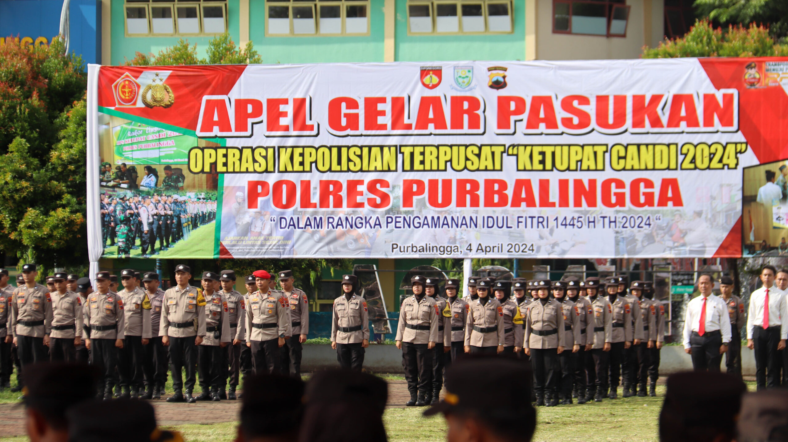 PURBALINGGA – Menjelang perayaan Idulfitri 1445 H, Polres Purbalingga menggelar Operasi Ketupat Candi yang dilaksanakan selama 13 hari mulai dari tanggal 4-16 April 2024. Operasi tersebut digongi dengan Apel Gelar Pasukan Operasi Kepolisian Terpusat Ketupat Candi 2024 yang dipimpin langsung oleh Bupati Purbalingga, Dyah Hayuning Pratiwi, pada Kamis (04/04/2024), bertempat di Alun-alun Purbalingga.