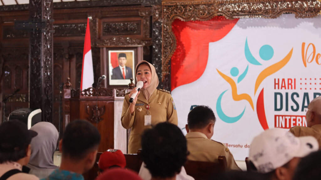 PURBALINGGA – Hari Disabilitas Internasional yang diperingati setiap tanggal 3 Desember menjadi momentum penting bagi para penyandang disabilitas. Tak hanya sekadar sebuah perayaan, melainkan sebagai refleksi dalam menciptakan inklusivitas yang nyata. Hal tersebut disampaikan oleh Bupati Purbalingga, Dyah Hayuning Pratiwi saat sambutan peringatan Hari Disabilitas Internasional ke-31, Senin (4/12), bertempat di pendopo Dipokusumo Purbalingga.