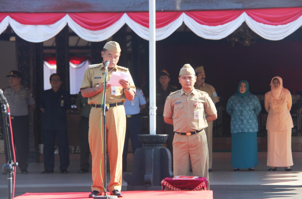 PURBALINGGA, INFO- Pemerintah Kabupaten (Pemkab) Purbalingga, melaksanakan upacara bendera memperingati hari jadi Provinsi Jawa Tengah yang ke 67, di halaman pendapa Dipokusumo, Selasa pagi (15/08). Upacara yang dipimpin langsung Bupati Purbalingga H. Tasdi SH. MM., diikuti seluruh Kepala OPD dan ASN di jajaran Pemkab Purbalingga.