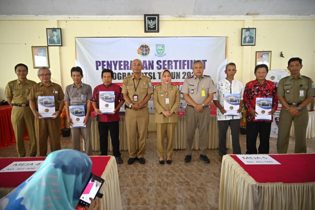 PURBALINGGA – Sebanyak 1002 bidang tanah di Desa Karangsari disertifikatkan dari program Pendaftaran Tanah Sistematis Lengkap (PTSL) oleh Kantor Badan Pertanahan Nasional (BPN) Purbalingga. Usai sertifikat diserahkan kepada penerima, Bupati Purbalingga Dyah Hayuning Pratiwi berpesan agar sertifikat tanah tersebut dijaga dengan baik.