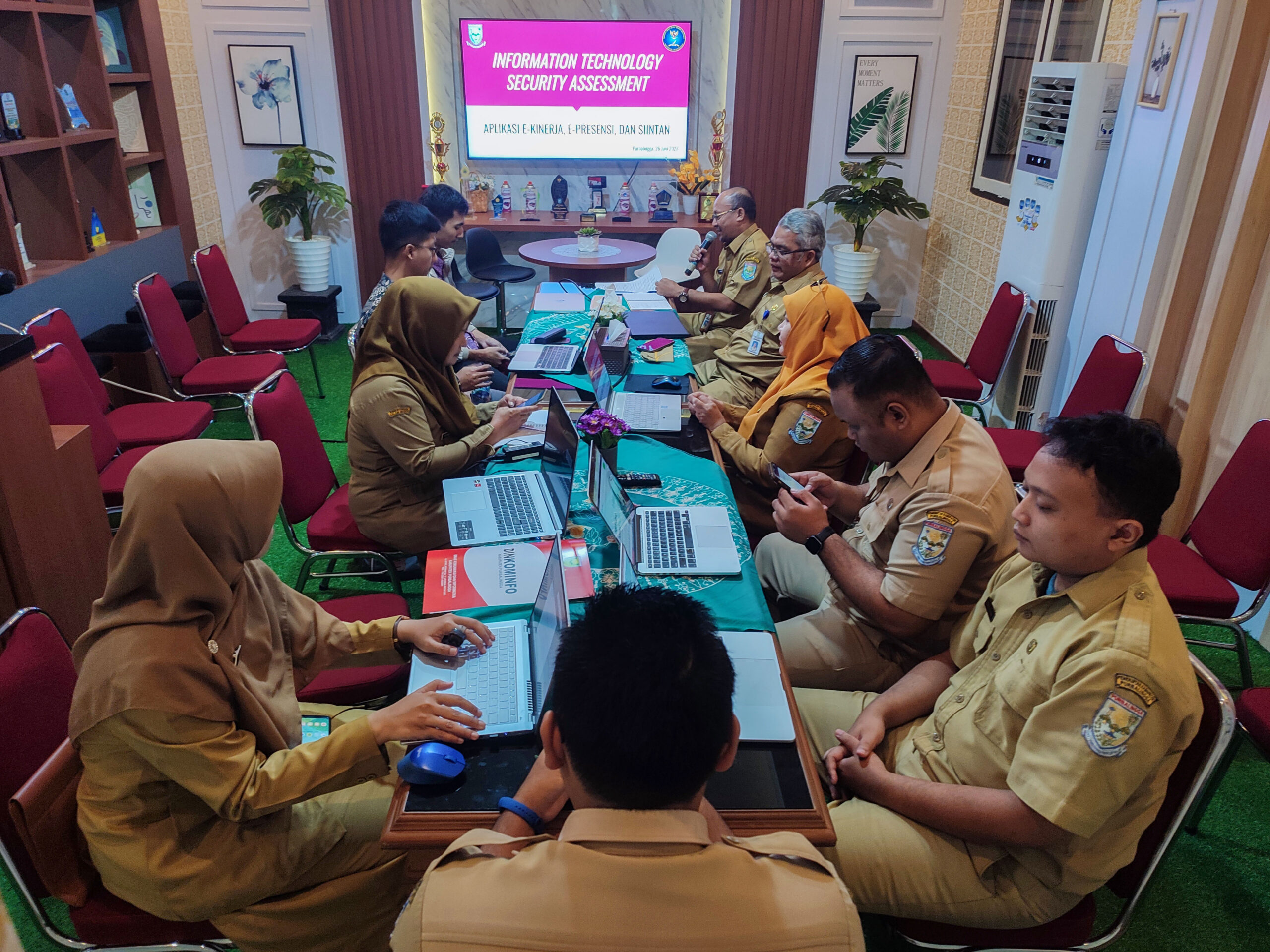 PURBALINGGA – Dalam rangka penguatan keamanan Teknologi Informasi dan Komunikasi, Dinas Komunikasi dan Informatika (Dinkominfo) Kabupaten Purbalingga membuka gelaran Information Technology Security Assessment ( ITSA) bersama Badan Siber dan Sandi Negara (BSSN) pada Hari Senin (26/6) bertempat di ruang Podcast dan Media Center Dinkominfo Purbalingga.