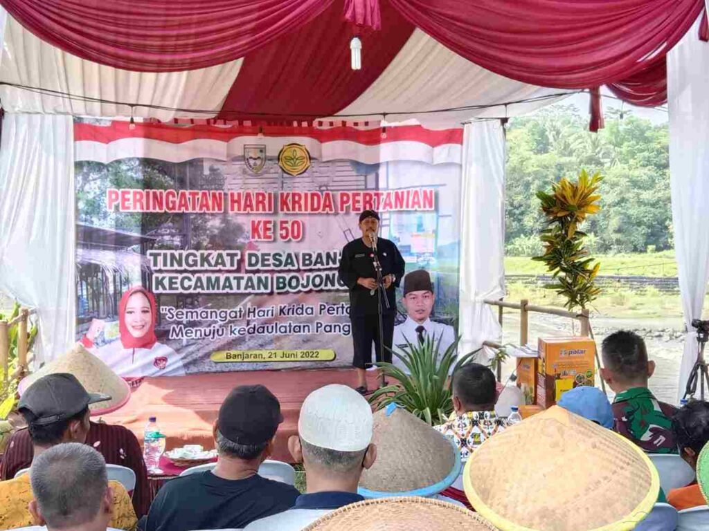 PURBALINGGA INFO- Sektor pertanian menjadi bagian dari pertahanan negara yang memegang peranan penting. Hal tersebut disampaikan Kepala Dinas Pertanian, Mukodam saat menyampaikan sambutan pada acara Hari Krida Pertanian ke-50 Desa Banjaran Kecamatan Bojongsari, Selasa (21/6/2022) di Obyek Wisata Klawing Sonten Desa Banjaran.