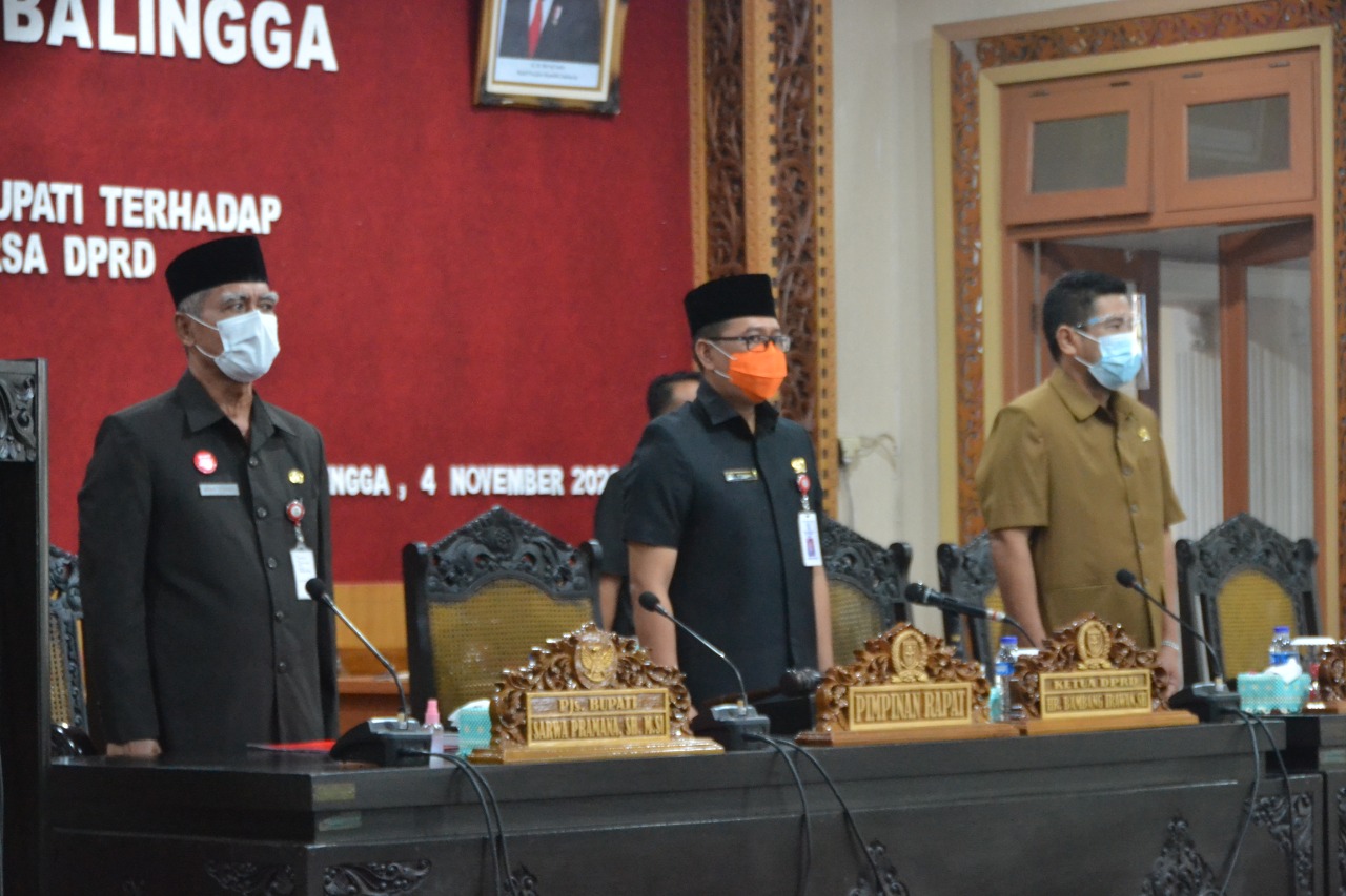 PURBALINGGA – PIs Bupati Purbalingga Sarwa Pramana SH MSi menyampaikan Pendapat Bupati Terhadap 4 Rancangan Peraturan Daerah (Raperda) Prakarsa DPRD, Rabu (4/11) dalam Rapat Paripurna DPRD Purbalingga. Secara umum ia menyatakan mendukung terhadap sejumlah Raperda tersebut, namun juga memberi catatan agar bisa disikapi lebih bijak.