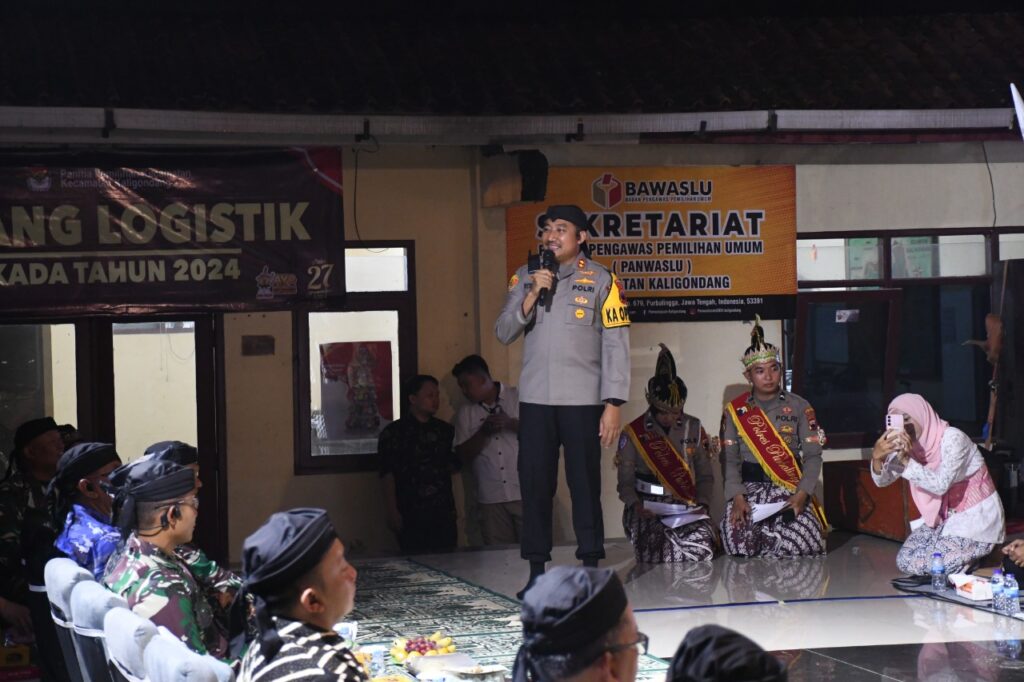 PURBALINGGA – Plt Bupati Purbalingga H Sudono menghadiri pagelaran Wayangan Polres Purbalingga, Jum’at (22/11/2024) di Pendopo Aboe Bakar Kantor Kecamatan Kaligondang. Ia mengapresiasi, wayang yang dibawakan kali ini membawakan pesan keamanan dan ketertiban masyarakat (kamtibmas) untuk Pilkada damai.