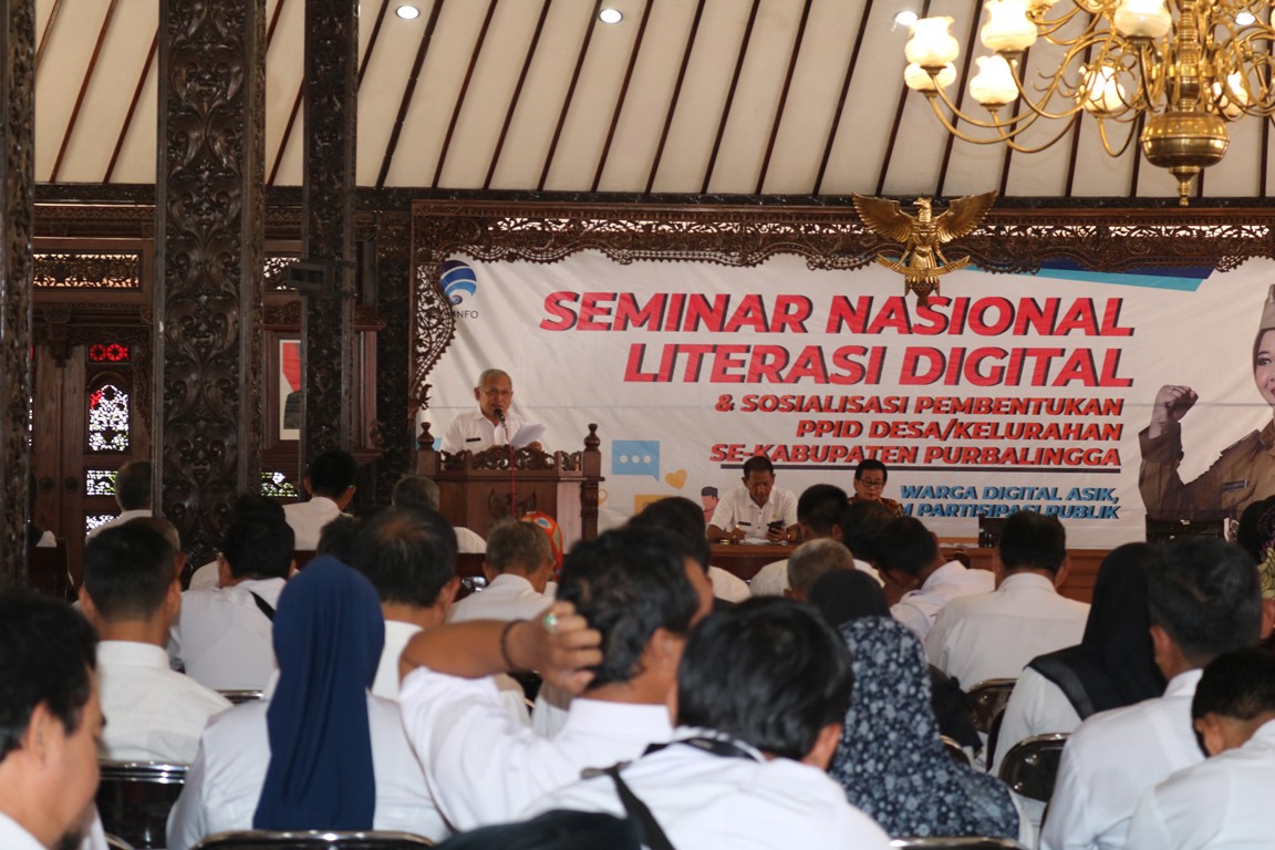PURBALINGGA, INFO- Berita berbasis politik mendominasi produksi berita hoax di Indonesia dalam kurun waktu satu tahun ini. Hal tersebut disampaikan Harry Hartono Kasubdit Literasi Digital Direktorat Pemberdayaan Informatika (PI) Kementerian Komunikasi dan Informatika (Kemkominfo) RI saat memberikan materi pada acara seminar nasional literasi digital dan sosialisasi PPID untuk Desa dan Kelurahan se-Kabupaten Purbalingga, Rabu (28/8/2019) di Pendapa Dipokusumo Purbalingga.