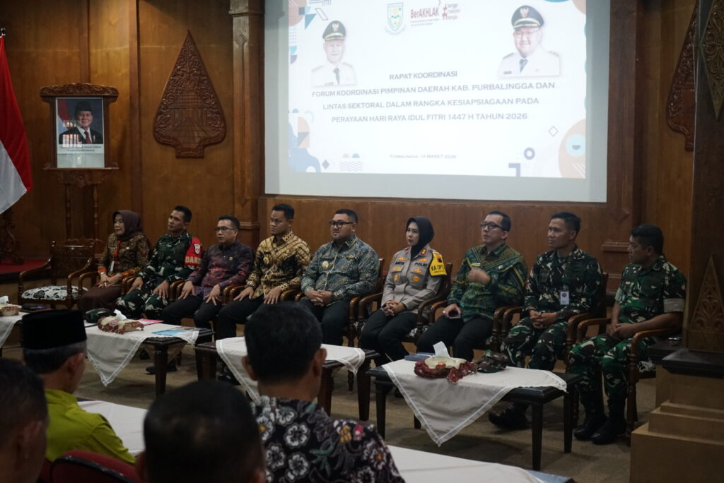 Hal tersebut disampaikan dalam Forum Koordinasi Pimpinan Daerah Kabupaten Purbalingga dan lintas sektoral dalam rangka kesiapsiagaan menghadapi perayaan Hari Raya Idulfitri 1447 H Tahun 2026 di Gedung Graha Adiguna Operation Room, Kompleks Pendopo Dipokusumo Purbalingga, Kamis (12/3/2026).