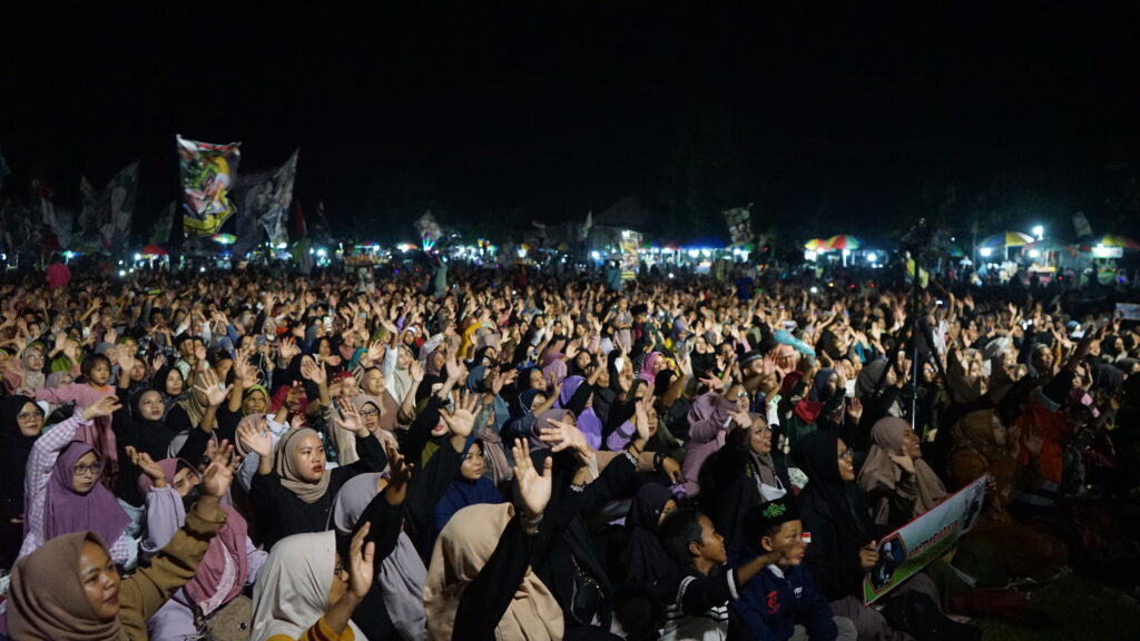 Purbalingga Bersholawat bersama Habib Haedar Alwi Assegaf di Lapangan Desa Kalikajar dipadati oleh ribuan jemaah Haedar Mania yang datang tak hanya dari Purbalingga, tapi juga dari kabupaten tetangga, Banyumas dan Banjarnegara. Sebelum bersholawat bersama, Habib Haedar mendoakan agar seluruh pihak yang terlibat dalam pembangunan Jembatan Wika diberikan pahala manfaat dunia akhirat. (tha/prokompim)