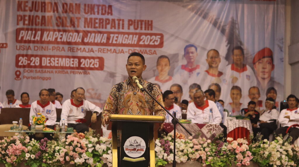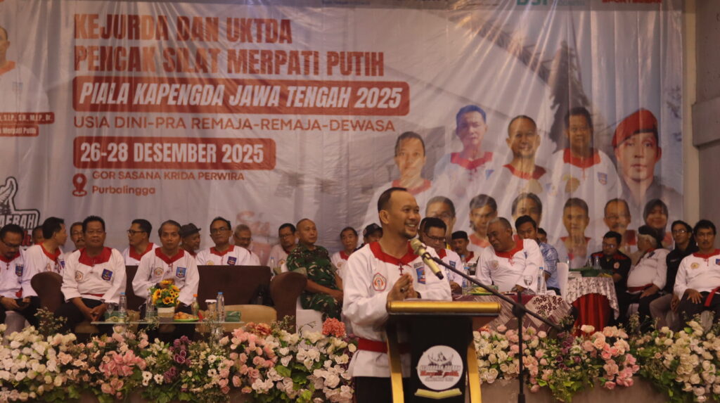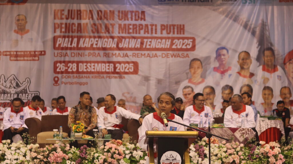 PURBALINGGA – Kejuaraan Daerah (Kejurda) dan Ujian Kenaikan Tingkat Daerah (UKTDA) Pencak Silat PPS Betako Merpati Putih Piala Ketua Pengda Jawa Tengah Tahun 2025 resmi digelar di GOR Goentoer Darjono Purbalingga selama tiga hari, mulai Jumat (26/12/2025). Ajang ini menjadi momentum penting pembinaan atlet sekaligus penguatan karakter pesilat Merpati Putih di Jawa Tengah.