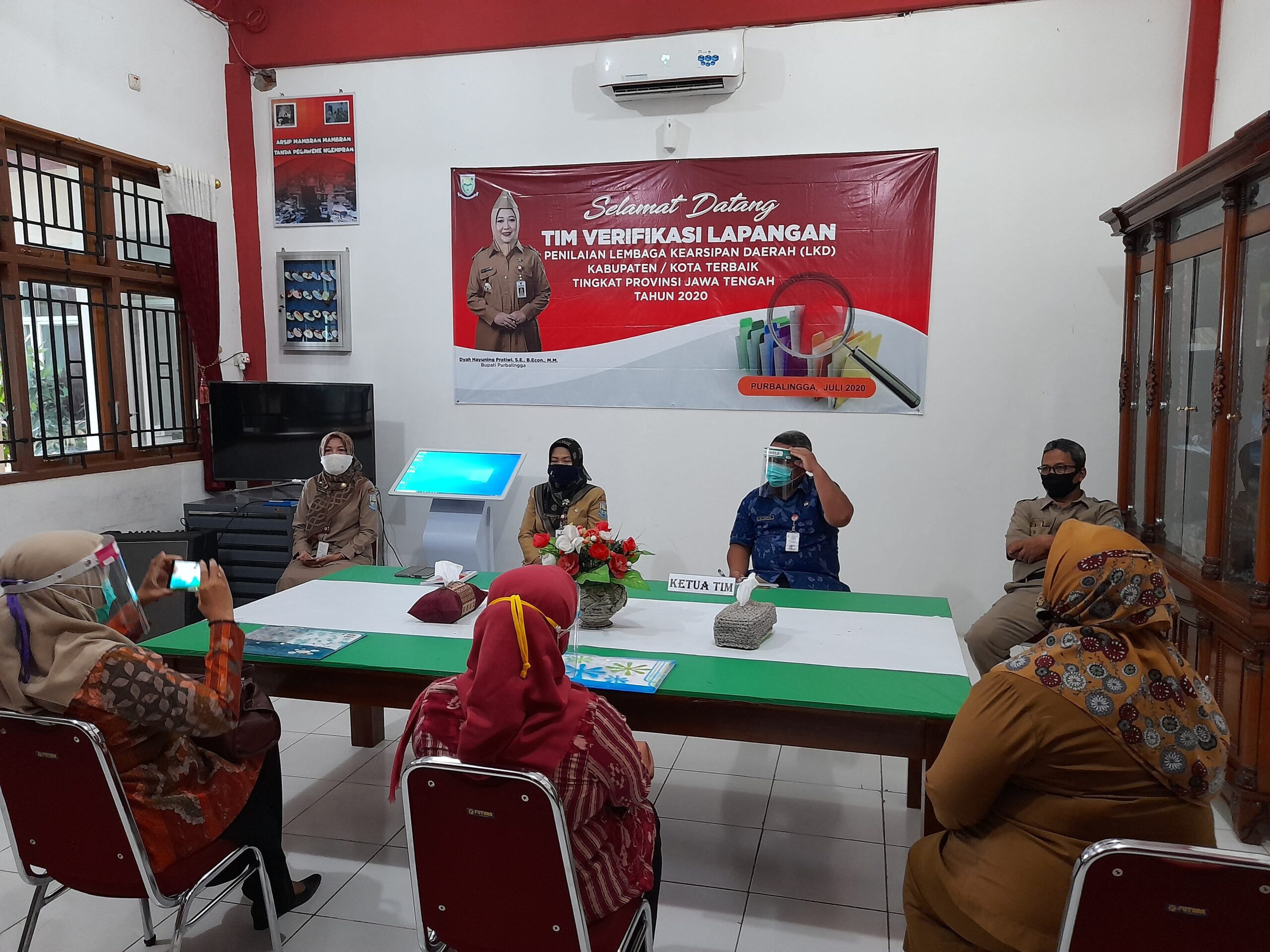 PURBALINGGA, INFO- Kabupaten Purbalingga optimistis menjuarai lomba kearsipan tingkat Provinsi setelah masuk enam besar. Hal tersebut disampaikan Kepala Dinas Kearsipan dan Perpustakaan (Dinarpus) Kabupaten Purbalingga, Jiah Palupi saat menerima tim verifikasi lapangan penilaian Lembaga Kearsipan Daerah (LKD) Kabupaten/ Kota terbaik tingkat Provinsi Jawa Tengah tahun 2020, Selasa (21/7/2020) di aula Dinarpus Purbalingga.