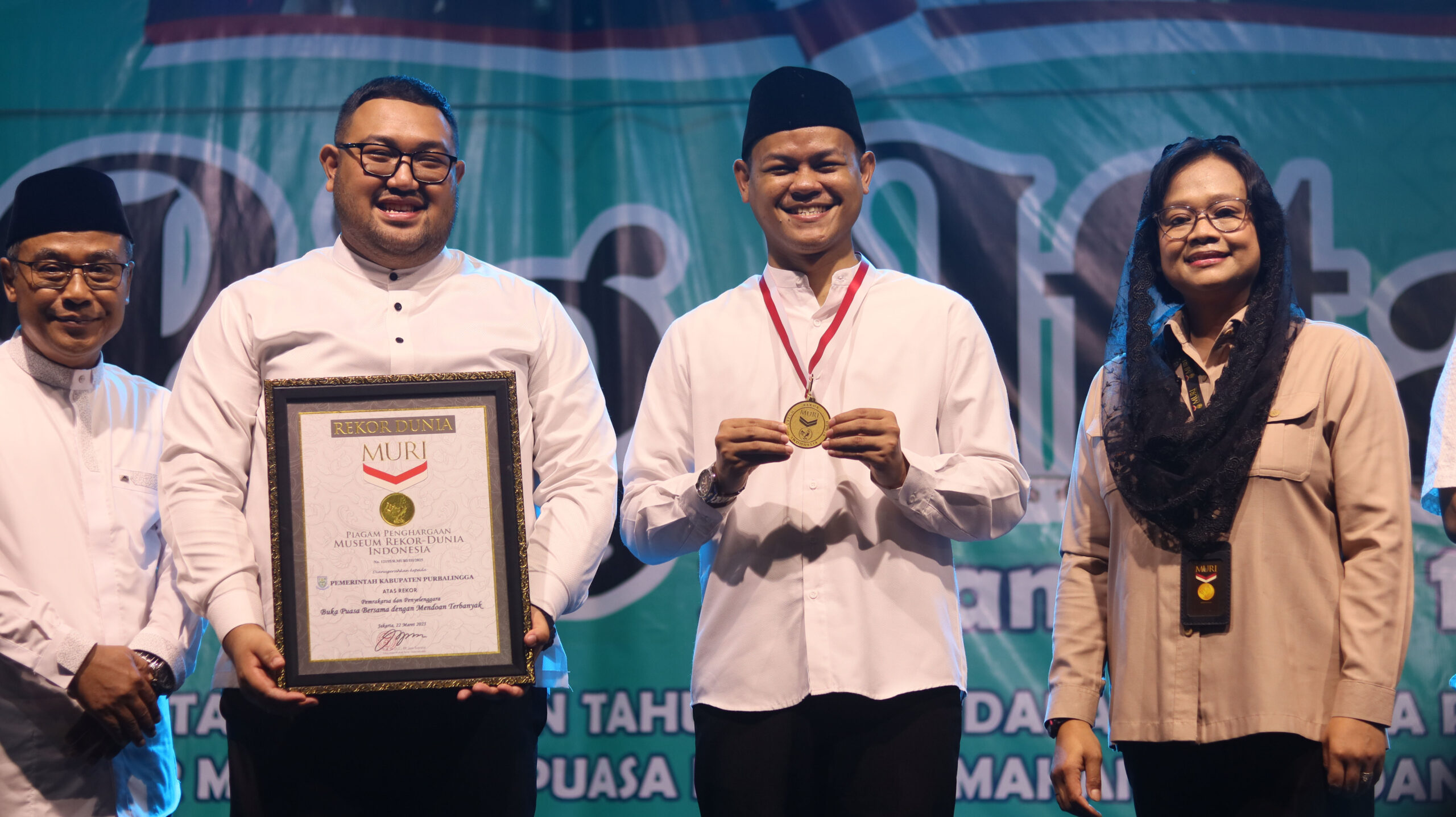 PURBALINGGA – Kabupaten Purbalingga kembali mencatatkan prestasi membanggakan dengan berhasil memecahkan rekor buka puasa bersama (bukber) tempe mendoan terbanyak di dunia. Acara bertajuk Big Iftar 2025 ini digelar pada Sabtu (22/03/2025) sore dan berhasil menghimpun 14.460 peserta yang berbuka puasa bersama di sepanjang ruas timur Alun-Alun Purbalingga hingga Bundaran Kodim 0702 Purbalingga. Keberhasilan ini resmi tercatat dalam Museum Rekor Indonesia (MURI).