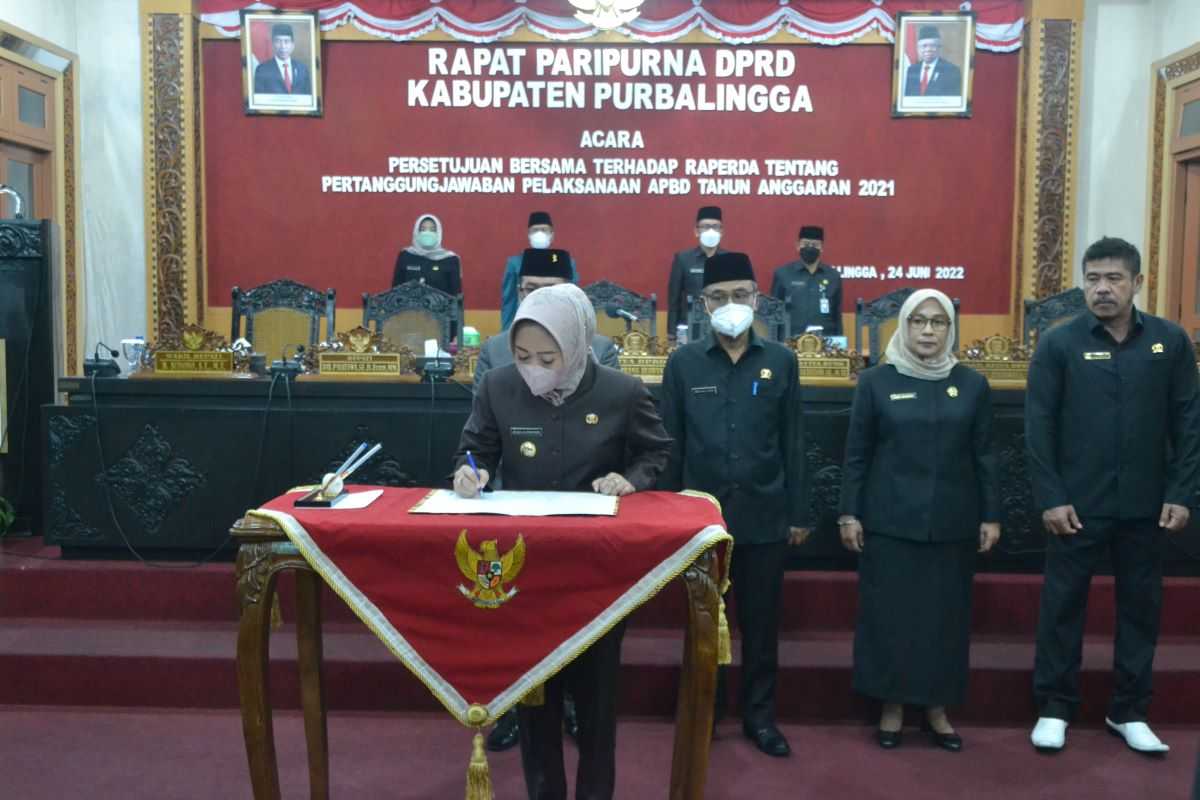 PURBALINGGA – Pemerintah Daerah bersama DPRD Kabupaten Purbalingga menyetujui bersama Raperda Tentang Pertanggungjawaban Pelaksanaan APBD 2021, Jum’at (24/6) di Ruang Rapat DPRD. Setelah melewati berbagai tahapan pembahasan, berikutnya Raperda ini akan dievaluasi oleh Gubernur Jawa Tengah sebelum ditetapkan menjadi Perda.