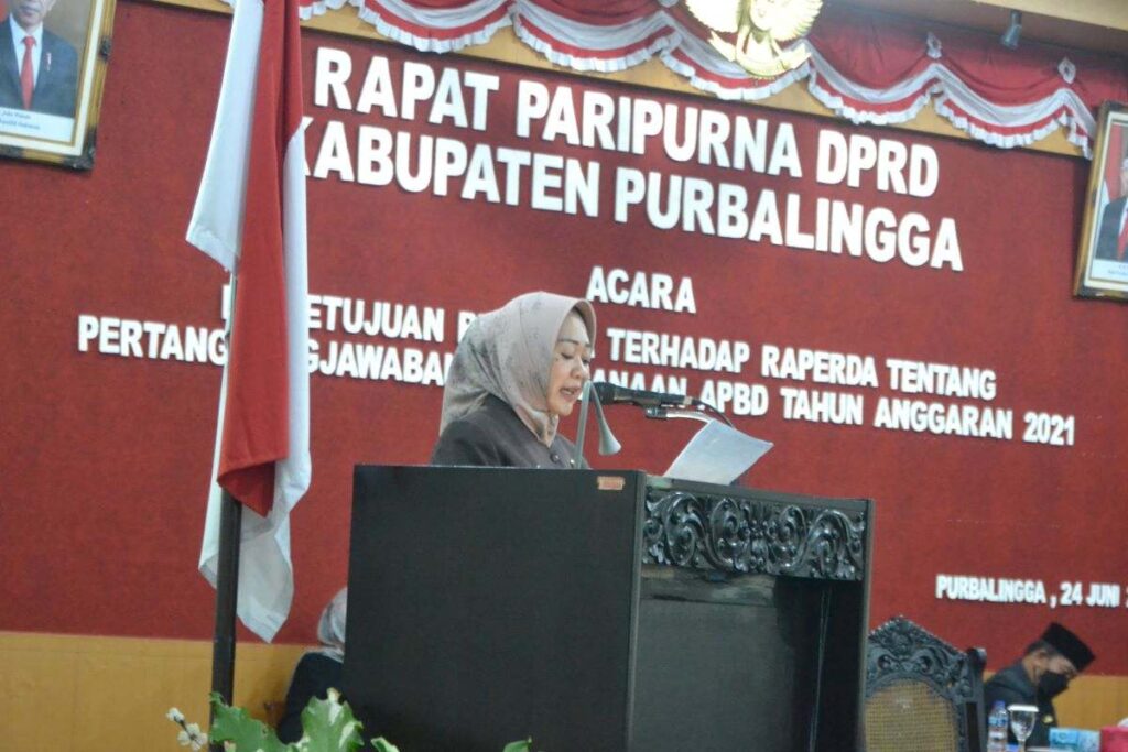 “Kami mengucapkan terima kasih kepada pimpinan dan anggota Badan Anggaran (Banggar) DPRD Kabupaten Purbalingga serta Tim Anggaran Pemerintah Kabupaten Purbalingga atas kerja sama yang sangat baik sehingga hari ini Raperda tentang Pertanggungjawaban Pelaksanaan APBD tahun anggaran 2021 dapat disetujui bersama menjadi Peraturan Daerah setelah sebelumnya dibahas secara lebih mendalam dalam rapat komisi dan Badan Anggaran,” ungkap Bupati Purbalingga, Dyah Hayuning Pratiwi SE BEcon MM.