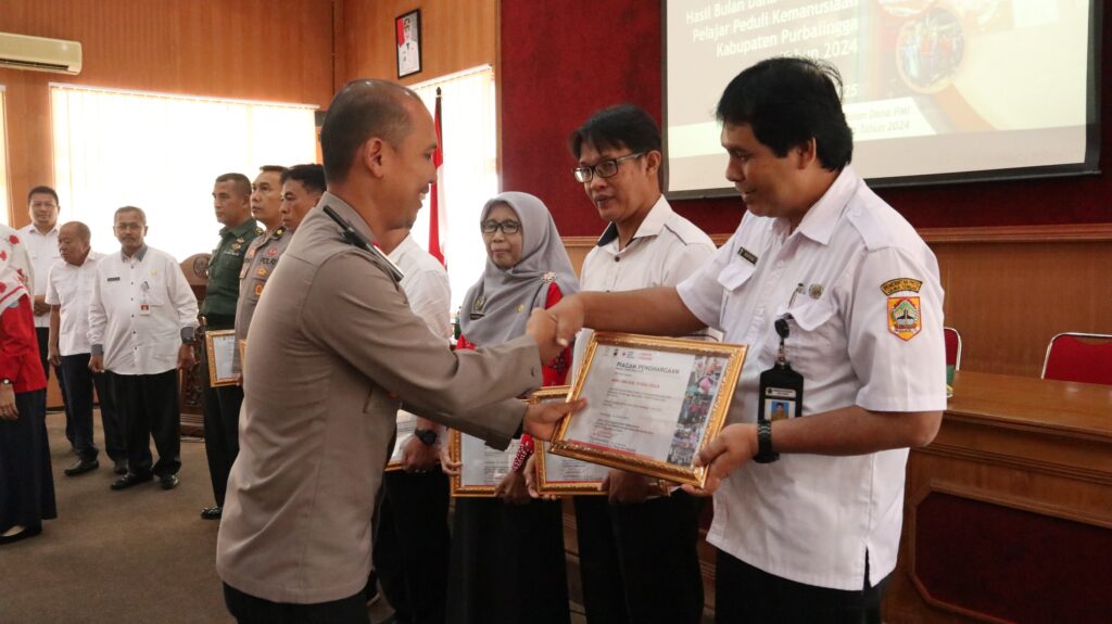 Hasil Bulan Dana PMI dan Bulan Pelajar Peduli Kemanusiaan Kabupaten Purbalingga tahun 2024 secara resmi diserahkan Kompol Donni K mewakili Kapolres Purbalingga selaku Ketua Panitia kepada Asisten Ekbang Mukodam yang mewakili Bupati Purbalingga, lalu kepada pengurus PMI untuk mengelola dana ini. (tha/prokompim)