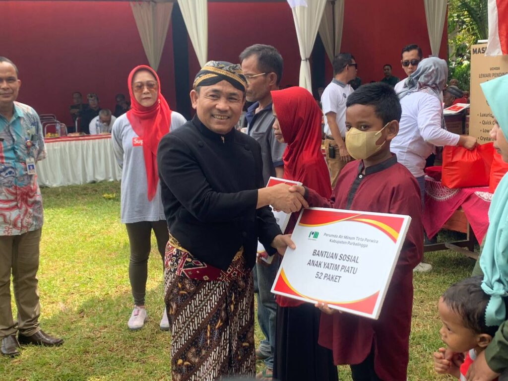 Pada kesempatan ini juga diserahkan bantuan dari PDAM Purbalingga berupa bantuan RTLH dengan nominal 10 juta rupiah, bantuan sosial listrik mandiri untuk 5 Keluarga senilai masing-masing 1,5 juta rupiah, bantuan anak yatim sebanyak 52 paket senilai 100 ribu rupiah per paket , 50 paket sembako untuk warga kurang mampu senilai 150 ribu per paket, dan bantuan untuk 20 anak stunting nominal 100 ribu rupiah per anak.